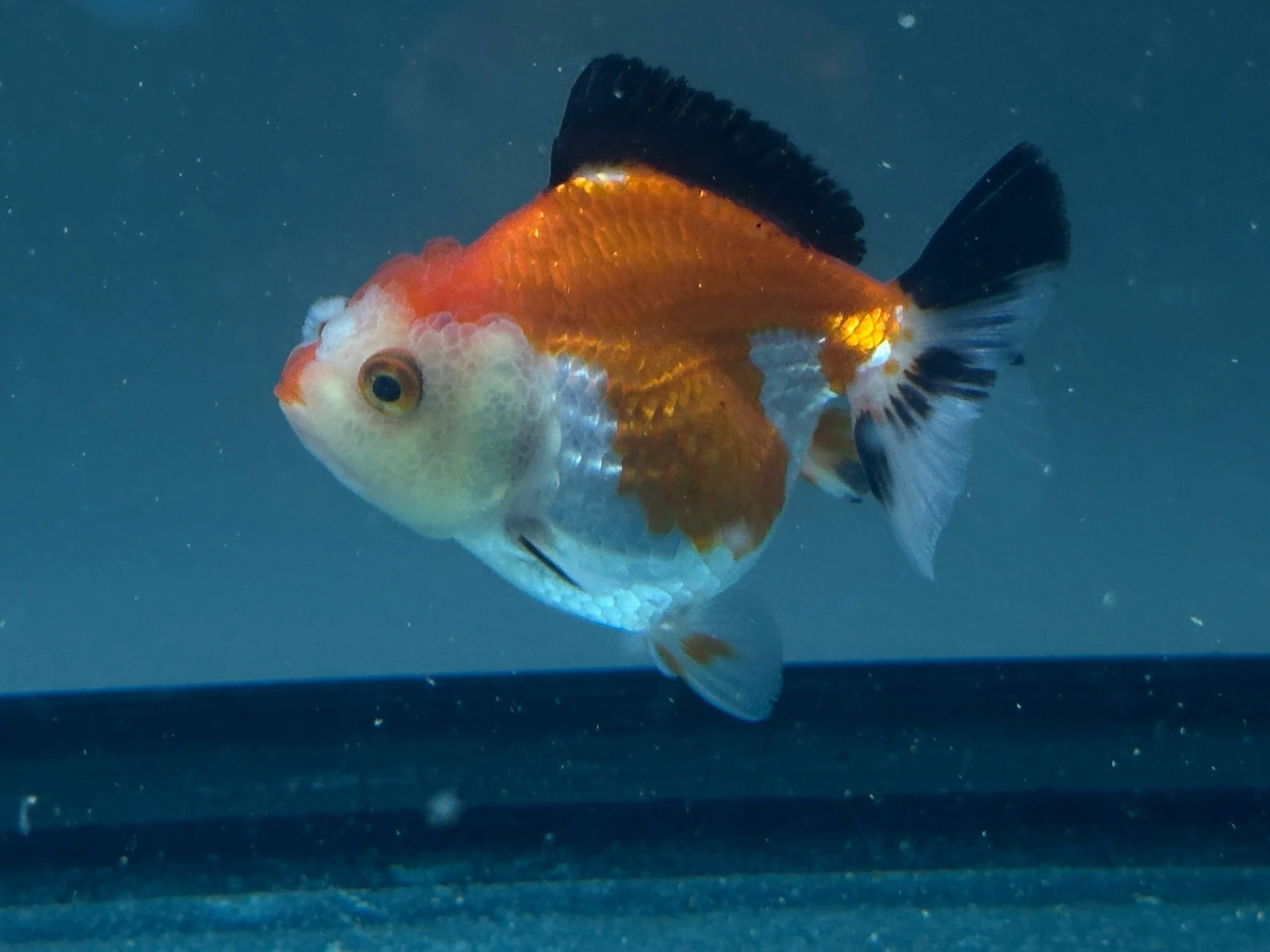 Diet: High-quality goldfish pellets, supplemented with blanched veggies (peas, spinach) and occasional protein (bloodworms, daphnia)